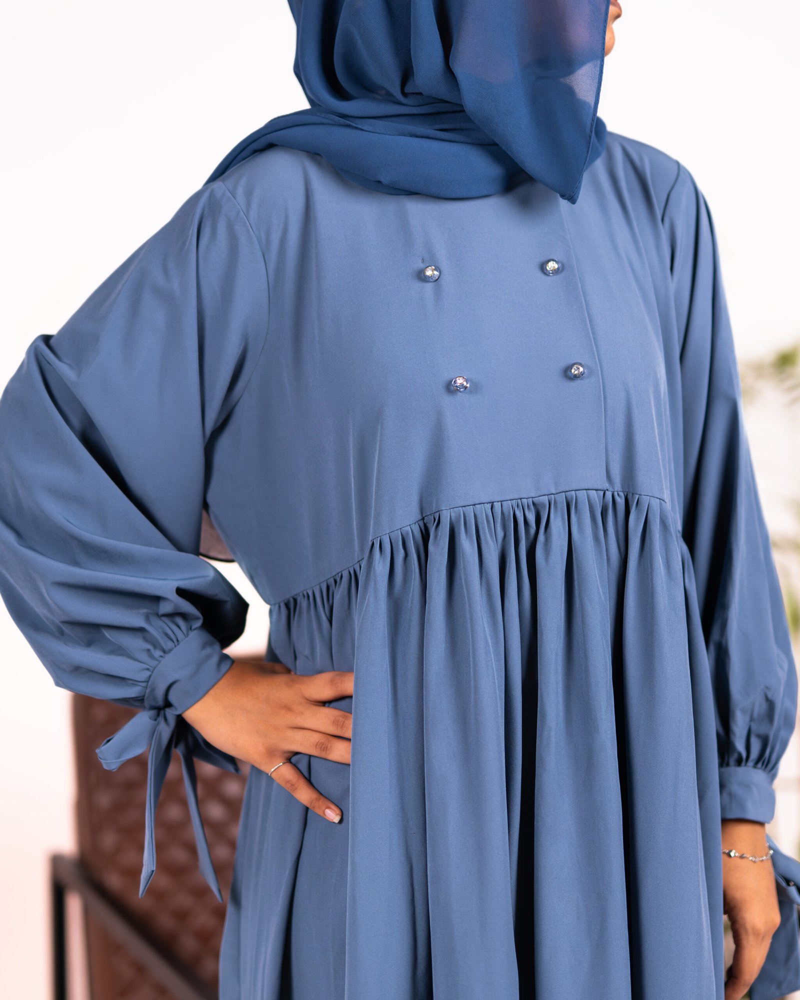 Mumarah – A stylish abaya designed with soft frill detailing, combining modesty with a modern touch. Made from high-quality fabric for all-day comfort, it’s the perfect everyday choice for college and university-going students.